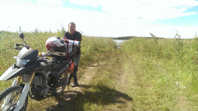 Найдя нужный поворот, мы наконец то двинулись сквозь поля и леса. Доехали до заветного озера, сфотографировались там на память и через двадцать минут выскочили на асфальт.