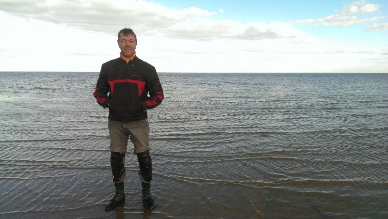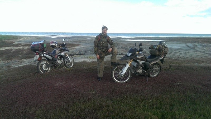 Очень скоро село солнце и стало заметно прохладнее, что-то около двенадцати градусов. Останавливаться мы стали всё чаще и чаще. Забавно, наверное, было со стороны наблюдать как на трассе останавливаются два байкера, один наматывает круги до леса и обратно, а другой прыгает в присядку и отжимается, или пытается обнять теплый движок. Было бы смешно, если бы не так грустно. Температура постепенно падала, а во время езды, ощущение было такое, что на улице минус двадцать. Ехать быстрее восьмидесяти километров в час было просто самоубийством. Ветер пронизывал до костей, пальцы на руках замерзали настолько, что я с трудом ими шевелил. Самое страшное, что во время езды, меня непроизвольно бросало в крупную дрожь, да так, что я боялся слететь с дороги. На очередном привале я даже собирался разрезать туристический коврик и подложить под куртку, но прикинув что возможно придется заночевать в лесу и спать на ледяной земле, от этого зверства отказался.