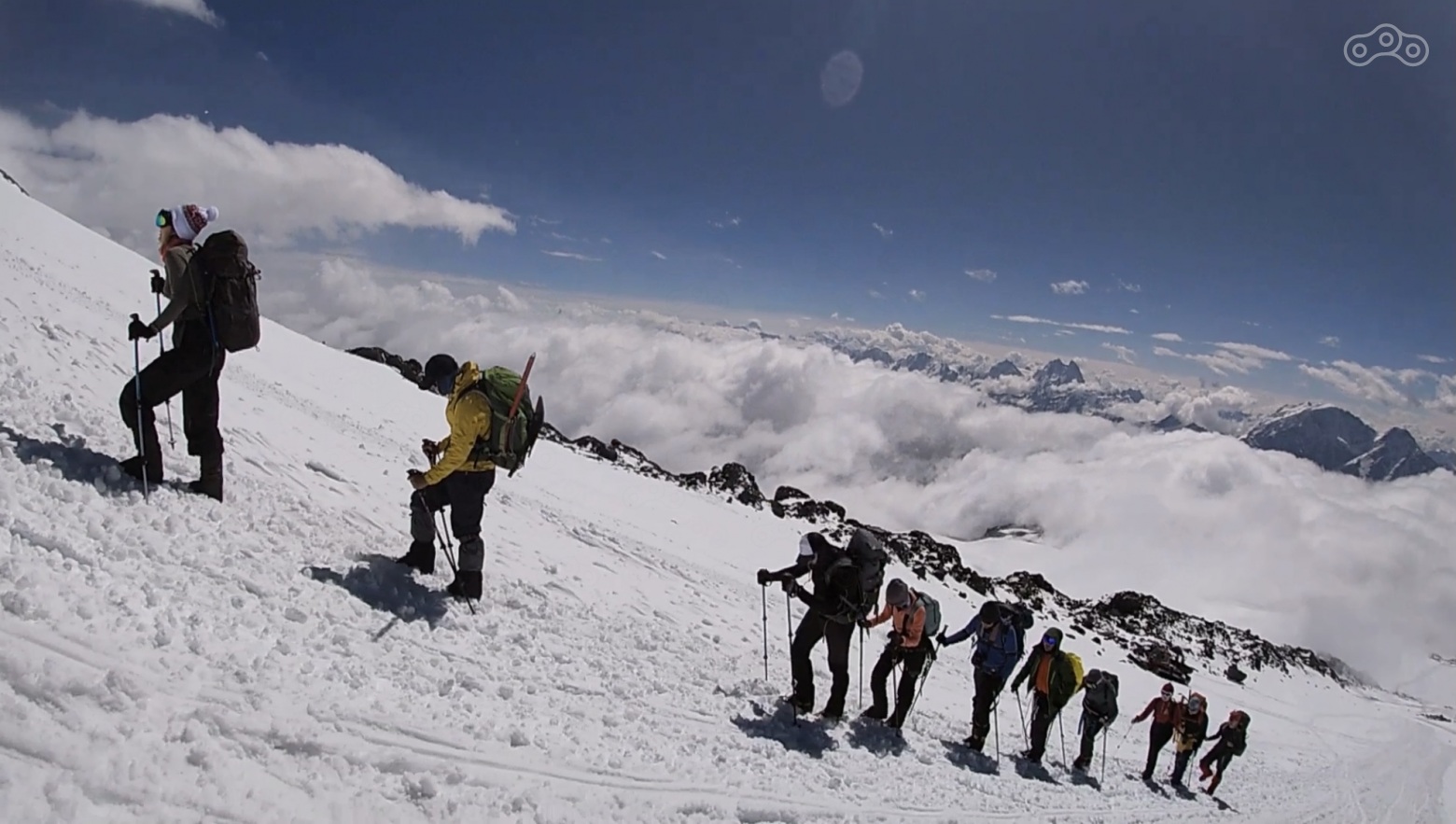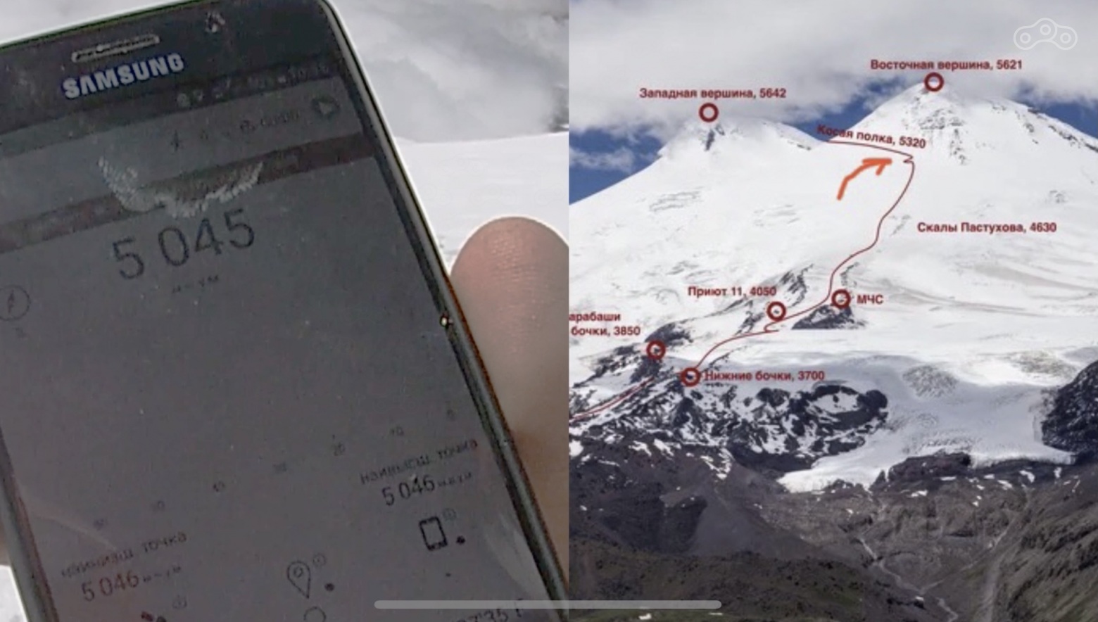 В этой части покажу, как можно всего за час добраться от подножья Эльбруса с Поляны Азау до начала так называемой косой полки, до отметки примерно 5045 м. Назвать это восхождением конечно же нельзя, но если вы ограничены по времени, но при этом хотите увидеть максимум, то это определенно самый быстрый вариант.