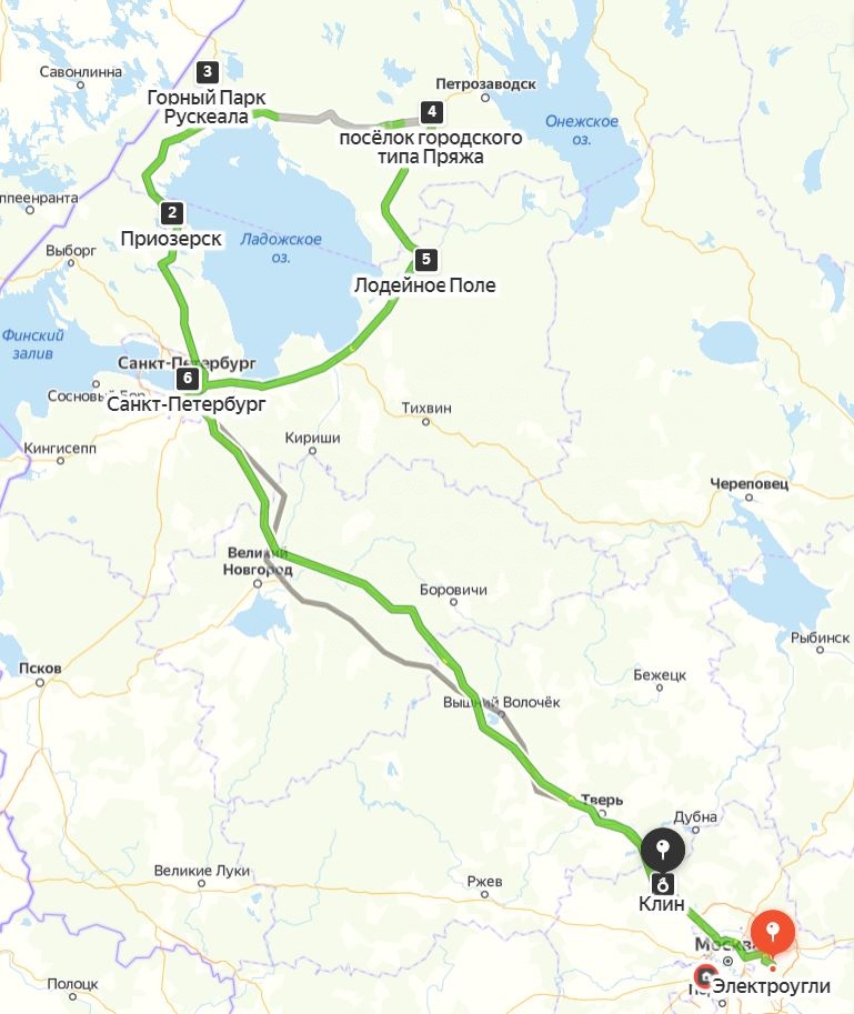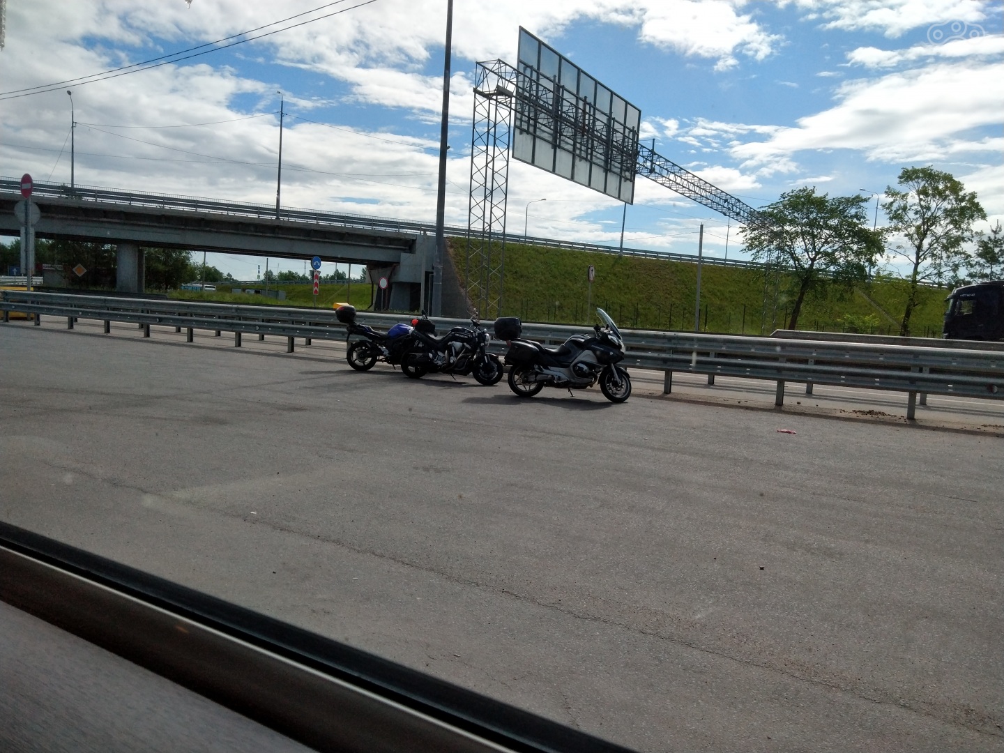 Обратно едем по платке. Во-первых, интереса ради, во-вторых, хочется быстрее доехать. Попытка выбраться из города без навигатора к успеху не привела. Намотали несколько кругов по утреннему мокрому Питеру. Опять же, логика дорог здесь мне не покорилась. Новая трасса, конечно, не чета старой, только ехать медленно ней скучно. Тут бы Бусу или другой-какой спорт тур. Мы же держим 130, долго ехать быстрее мне не комфортно – устаёт шея. С заправками, как все и рассказывают, правда не очень. В среднем каждые 150 – 180 км. Мне хватает. Очередей на них особо не было. К Москве подъехали быстро, вновь уходим на бесплатку у Клина. Там наши пути расходятся. Вместе заправляемся, вспоминаем моменты, жмём руки…