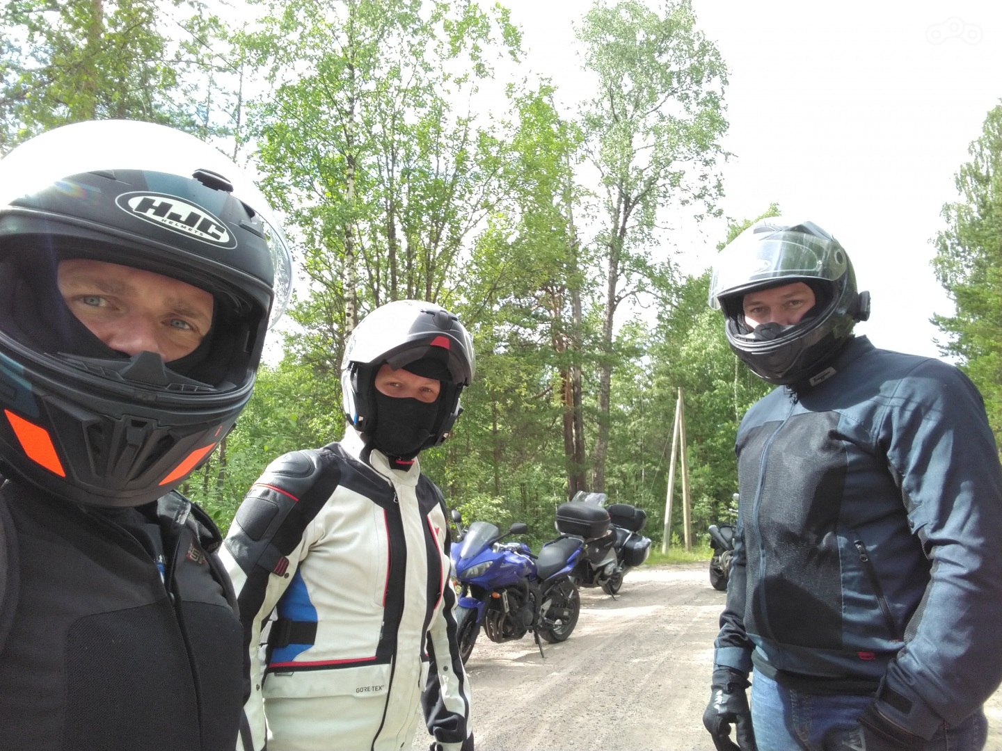 На следующий день планировался большой перегон через карельскую часть маршрута с заездом в пару интересных мест. Выехали рано, едем, ощущая холодное дыхание окружающей дорогу тайги. Моросит. Въезд в Карелию отмечен неожиданным стихийным блокпостом, но дежуривший солдатик оставил мотоциклетчиков без внимания. Постепенно погода прояснилась, а дорога прижалась к ладожскому берегу. И начавшийся серпантин оказался не хуже знаменитого Джубга - Сочи! Повороты, перепады, невозможность понять, что будет за следующим виражом, идеальный асфальт и при этом почти свободно. Настоящий бесплатный аттракцион и возможность понять, насколько ты “chicken”. Из нас троих я начал отставать. Первый раз ощутил, как сильно МТ не любит поворачивать. Чтобы его «завалить» нужно приложить заметные усилия. Вес, длинная база и широкий задний баллон очевидно не самые лучше помощники активному рулению. Да и необходимость постоянно переключаться при отсутствии какой-либо страхующей электроники отвлекает. Риск заблокировать заднее колесо инерцией огромного мотора на переключении вниз перед виражом вполне реален. Но сам процесс захватывает. Мотоцикл очень понятен и уверенно идёт в наклоне. Просто требует полного включения райдера. Хотя возможно дело как раз в нём, привыкшем ездить по прямой. Пока Саня с Тёмой соревновались в лихости, я пытался не отстать и отбивался от некоторых задетых автомобилистов, вспомнивших, что у них тоже есть мотор. Пожалуй, это был самый жёсткий, в хорошем смысле этого слова, дорожный мотопродубас на моей памяти.