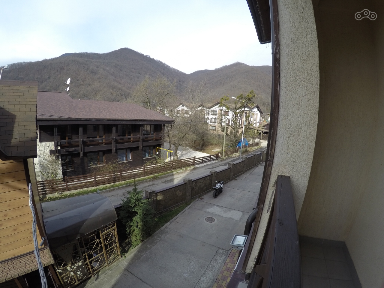 Самое важное нас ждало впереди! Горы! Ради них мы сюда и ехали! Найдя отель на сайте, приехали в какое-то захолустье, а отеля там как такового и нет. Никто соответственно двери нам не открыл. Поехали искать, нашли чуть подороже, но зато с охраняемой парковкой. И вот- утро, проснувшись, из окна прямо таки вид- ну предел моих мечтаний. деревянные перила балкона и просто охриненный вид на горы, все это было приправлено ярким солнышком, и моему счастью не было предела. Весь год я так хотел, и вот наконец то я тут, там где можно найти свое умиротворение, жаль домик не собственный.