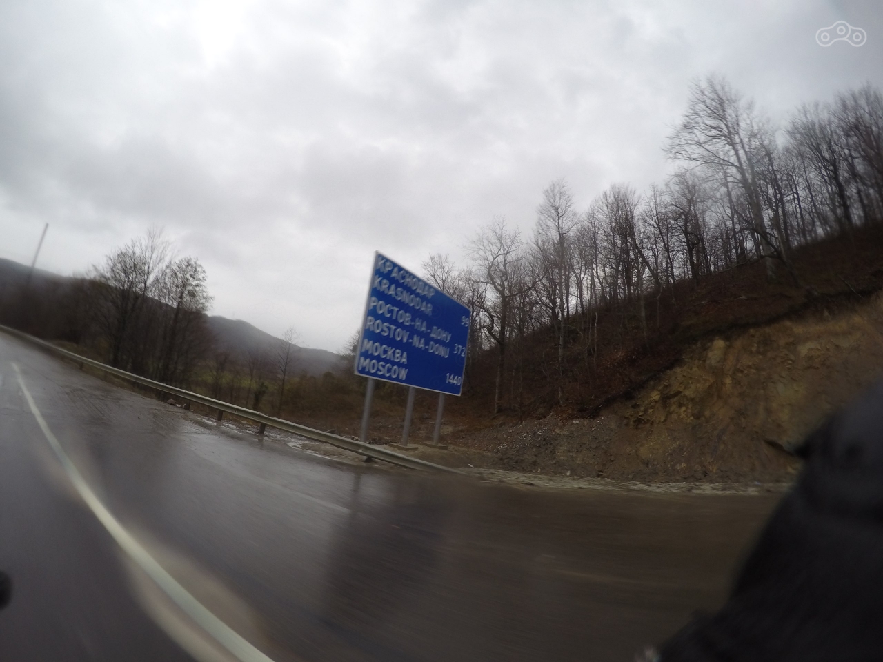 Доехали до Джубгы, нашли отель за 700 рублей, переночевали. Уехали утром, но нужно было доехать до моря, какое оно сейчас, когда не сезон. Не очень я был впечатлен, но и следовало ожидать, погода пасмурная, +1 хотя пару дней назад было тепло. Ничего интересного. Едем, выехали от моря примерно в 2 часа дня. Началась самая холодная пора.