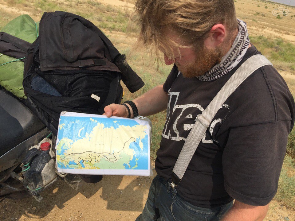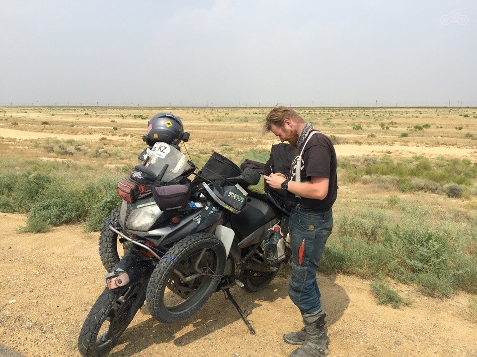 День шестой — выехав из Атырау, я направился на юг Казахстана. Дороги прямые как стрела, трафик небольшой. По пути встретил Павла, вот о нем стоит рассказать больше, чем о дорогах. Павел путешествует по маршруту в 37000 км. Только вдумайтесь и оцените эти цифры. Проехав через Турцию и Грузию, он едет по Казахстану, а дальше у него по плану Монголия, Магадан и обратно домой в Чехию. По планам- это все должно уложиться в три месяца. Павел неплохо говорит по-русски, что даёт ему неплохой бонус, перед другими иностранными путешественниками.