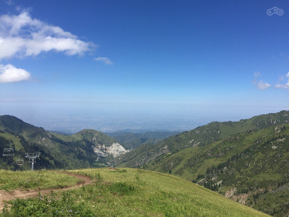 На следующий день мы отправились посмотреть университет, в котором работает Жан, а потом осмотреть достопримечательности Алма-Аты. Яблоневый город, именно так можно перевести название, находится у границ с Киргизией и Китаем, и окружен горными хребтами. Одной из главных достопримечательностей считается место под названием Медеу — спортивный комплекс, который расположился на высоте около 2 тысяч метров. Считается, что мировые рекорды здесь ставятся благодаря льду, воду для заливки которого берут с чистейших горных ручьев. Именно поэтому, негласное название этого ледового катка — «Фабрика Рекордов» (свыше 200 мировых рекордов по конькобежному спорту). от Медеу вверх идут как кресельные, так и кабинные подъемники, подняться на которых можно до высоты в 3860 метров. Зимой это место, под названием Чимбулак, переполнено лыжниками и сноубордистами и является одним из популярнейших горнолыжных курортов Казахстана. Поднимаясь на кресельном подъемнике, мы неплохо поджарились на солнце, а вот спуск наоборот был холодным, благодаря ветру и туче, которая зацепилась за верхушку гор. Как известно, погода в горах меняется моментально. Так произошло и на этот раз — уезжая вниз, мы уже не видели верхушки Заилийских Алатау, которые входят в состав горных хребтов Тянь-Шаня. После прогулки по свежему воздуху неплохо бы и пообедать.
