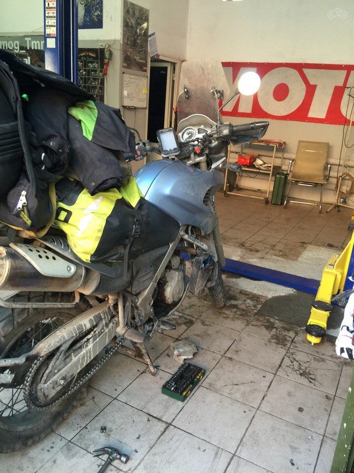 Никак не заканчивающийся проект на работе, не давал мне возможности выехать в запланированные даты, поэтому выезд пришлось сдвигать на две недели вперед. Так как дорога, судя по нарисованному маршруту была неблизкая, мотоцикл я готовил основательно: были заменены подшипники рулевой колонки, топливный фильтр и он же регулятор давления, вал помпы охлаждающей жидкости, естественно сама ОЖ, масла и фильтры. Ну и наконец-то — сальники и масло в вилке. К организации процесса подошел размерено, с барского плеча поделив все на три этапа в три дня. Точней в три ночи, в последнюю из которых я поставил сальники вверх ногами, что дало мне повод задержаться в Самаре и познакомиться с замечательными людьми. Если вы пользуетесь приложением MotoGipsy, то наверняка знаете о хелп-листе, который в нем есть. Собственно рано утром, выехав с места ночевки, я понял течь масло из вилки перестанет только в случае, если это самое масло в вилке закончится. Поэтому утром отряд смс полетел на мобильные номера товарищей из хэлплиста. На мое удивление, все откликнулись, кто-то перезвонил, кто-то написал смс, кто-то просто дал контакт знакомых, которые смогут помочь. Спасибо всем большое, мы с вами не знакомы, но приятно, что каждый из вас готов прийти на помощь.