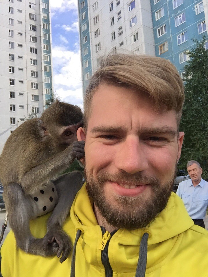 З.Ы. Часто рассказываю, как в Нижневартовске зимой прям к подъезду приходят медведи. Открываешь ты такой утром дверь, выходя на работу, а косолапый выпрашивает у тебя еду или роется в помойке. Так вот в соседнем подъезде теперь живёт обезьянка. Очень смешно наблюдать из окна, как на детских площадках тишина и никого нет, но стоит выйти мальчику с обезьянкой, как тут же вокруг него 20 детей разрывают примата на сувениры.