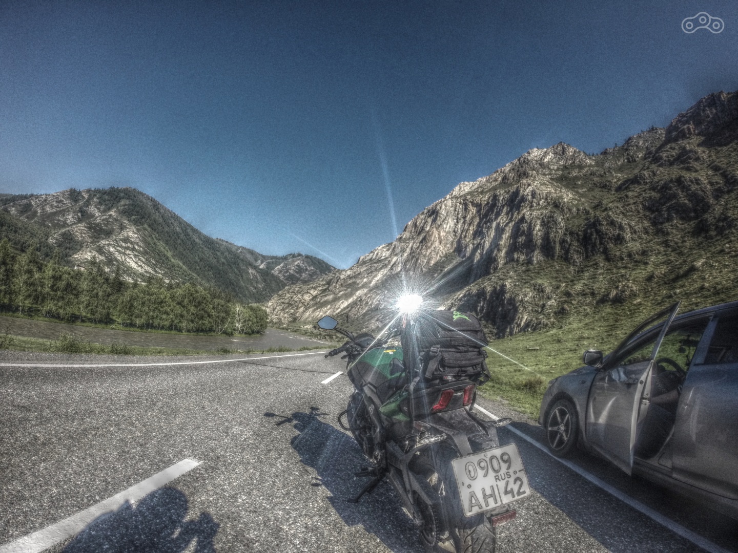 Байкеров тут действительно очень много и они очень разные: молодёжь на спортах, авантюристы на китайцах, малокубатурниках или советской технике, опытные путешественники на туристических эндуро или круизёрах и т.д. Здесь встречаются одиночные байкеры и компании разных размеров (как то лицезрел армию из более чем 30 байкеров). Таким образом, если тебе надо, то ты с лёгкостью найдёшь компанию. Дорога с хорошим асфальтным покрытием, вдоль которой тянется бурная река и горы, горы, горы. Альпийские луга, отсутствие мошки и комаров манят сделать остановку то здесь, то там. Встать лагерем тут можно практически в любом месте. Но настоящая обитель байкеров расположена ближе к концу тракта, я говорю про с. Акташ. Я даже несколько удивлён, что здесь не проводится какое либо крупное мотособытие,