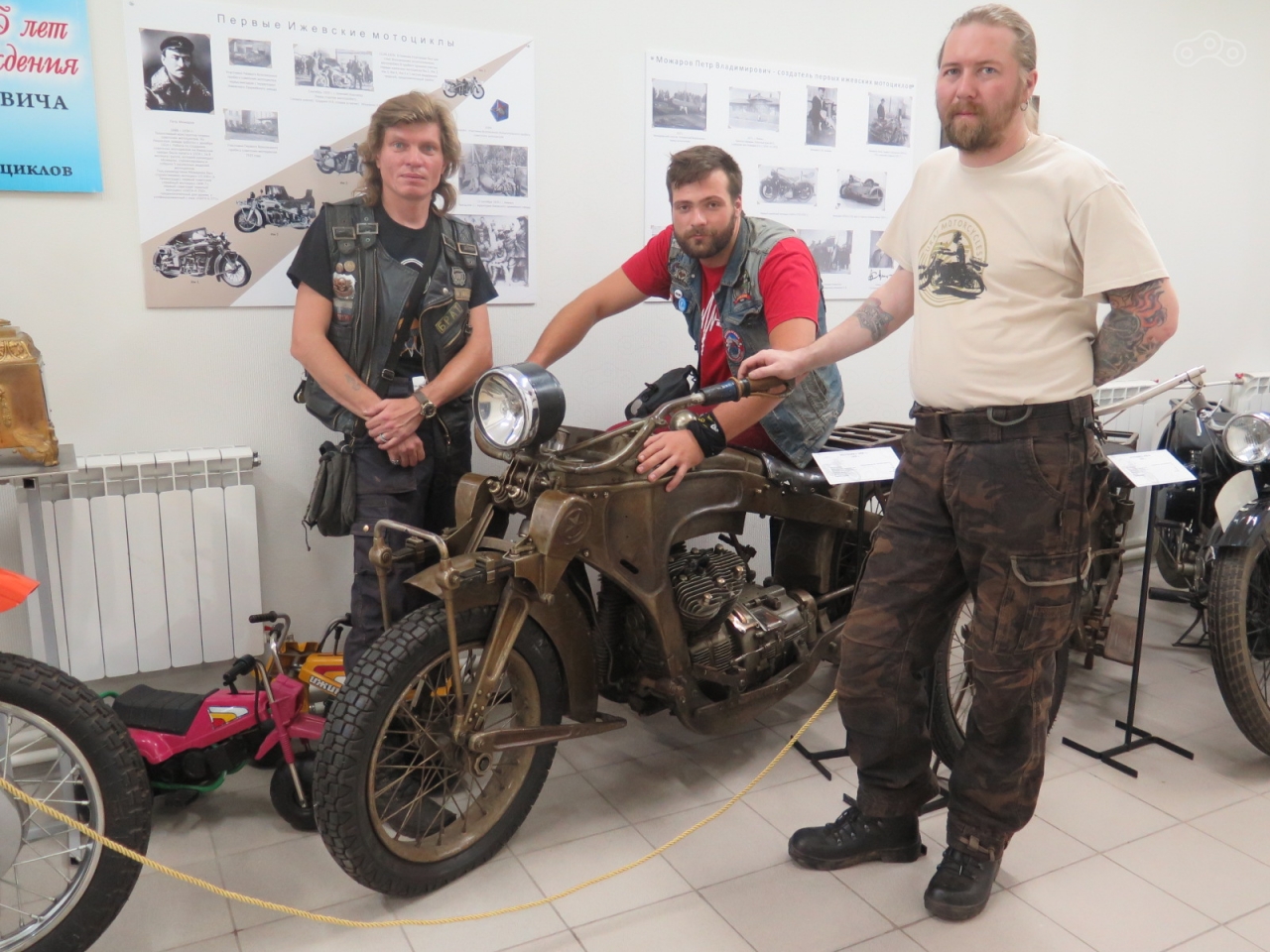 Увы, именно затусить в гараже не выходило никак - времени было в обрез, поэтому после легких алкогольных возлияний мы отправились на боковую, а на утро Игорь наотрез отказался отпускать нас без заезда в музей Ижмаша, где помимо стрелкового оружия хранится и часть заводской коллекции мотоциклов, включающей в себя весьма редкие экземпляры.
