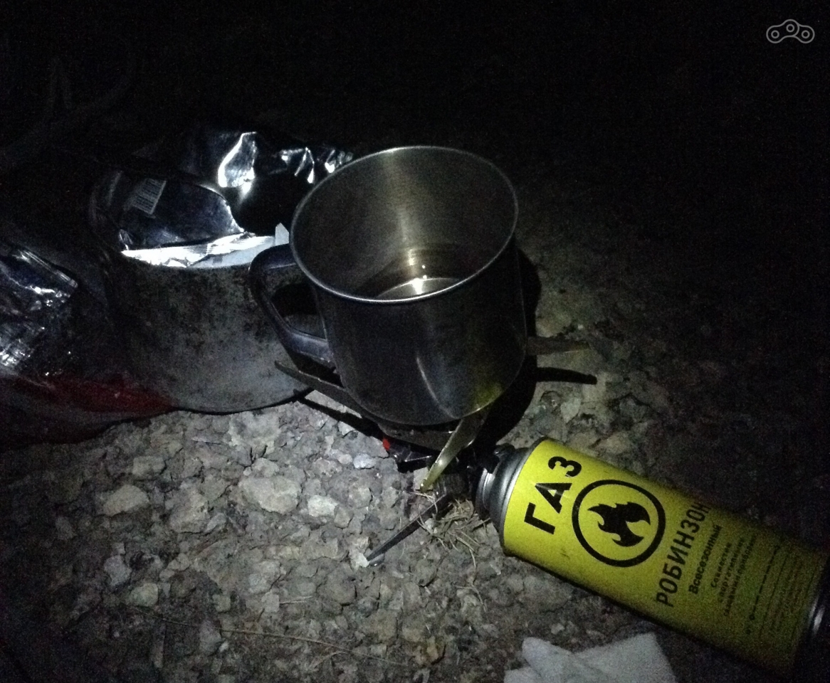 Солнце потихоньку начинало притягиваться к горизонту на западе, а впереди блестели то там, то тут красивейшие огромные молнии. Такая картина и завораживала, и пугала одновременно. Вокруг поля, где ближайший населенный пункт, не понятно. Ни кафе, ни гостиниц. Палатку ставили немного в стороне от трассы (не могу я спать под шум проносящихся по ней фур), посреди недавно убранного поля пшеницы или чего-то такого в ямке подальше от деревьев под начинающийся дождь, который с силой падал на нас крупными каплями. Еще возникла небольшая проблема, где и как поставить мотоцикл. На дороге не хотелось оставлять, поле – плодородный чернозем, мягкий и рыхлый, даже центральная подножка на мотоцикле под ним проваливалась в землю. Еще несколько попыток вдвоем поставить мотоцикл, чтобы он никуда не заваливался, и вот мы уже в палатке греем воду на газовой горелке, чтобы приготовить себе ужин.