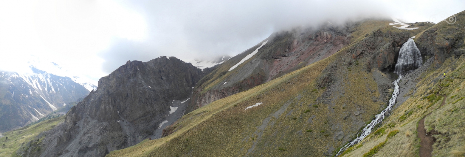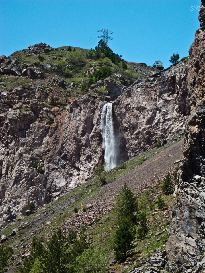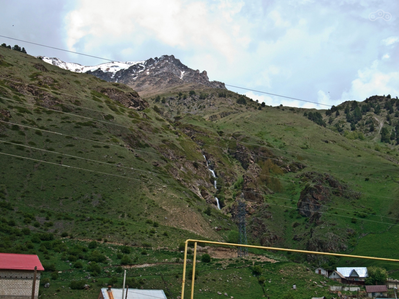Кто не прогуливал в школе физику, тот должен знать, что при низком атмосферном давлении и небольшом содержании кислорода в воздухе процессы кипения, таяния и замерзания происходят при других температурах – вода закипает раньше, а снег тает позже. Наконец я дошёл до крутого поворота, от которого шла узкая тропа к водопаду. Водопад выглядел шикарно, однако я не рискнул к нему идти, потому что на такой высоте, а водопад находится на высоте 2747 метров (точнее не сам водопад, а я находился на этой высоте), и у меня с непривычки стала кружиться голова. Я присел на камень, а мимо меня бодро проскакали пятеро пацанов разного возраста, сопровождаемые отцом. Отец указал одному из них на скалу возле водопада и сказал «Смотри, тур!». И действительно, слева от водопада на скале стоял горный козёл и смотрел на нас. Судя по разговору, там был ещё и второй, но я его не разглядел. Я немного пришёл в себя, но всё же не рискнул топать к самому водопаду с головокружением по узкой тропинке, решил ограничиться видом издалека. Пацанята же не только облазили всё у подножья водопада, но и в мгновение ока забрались наверх, где ещё недавно мы видели тура.