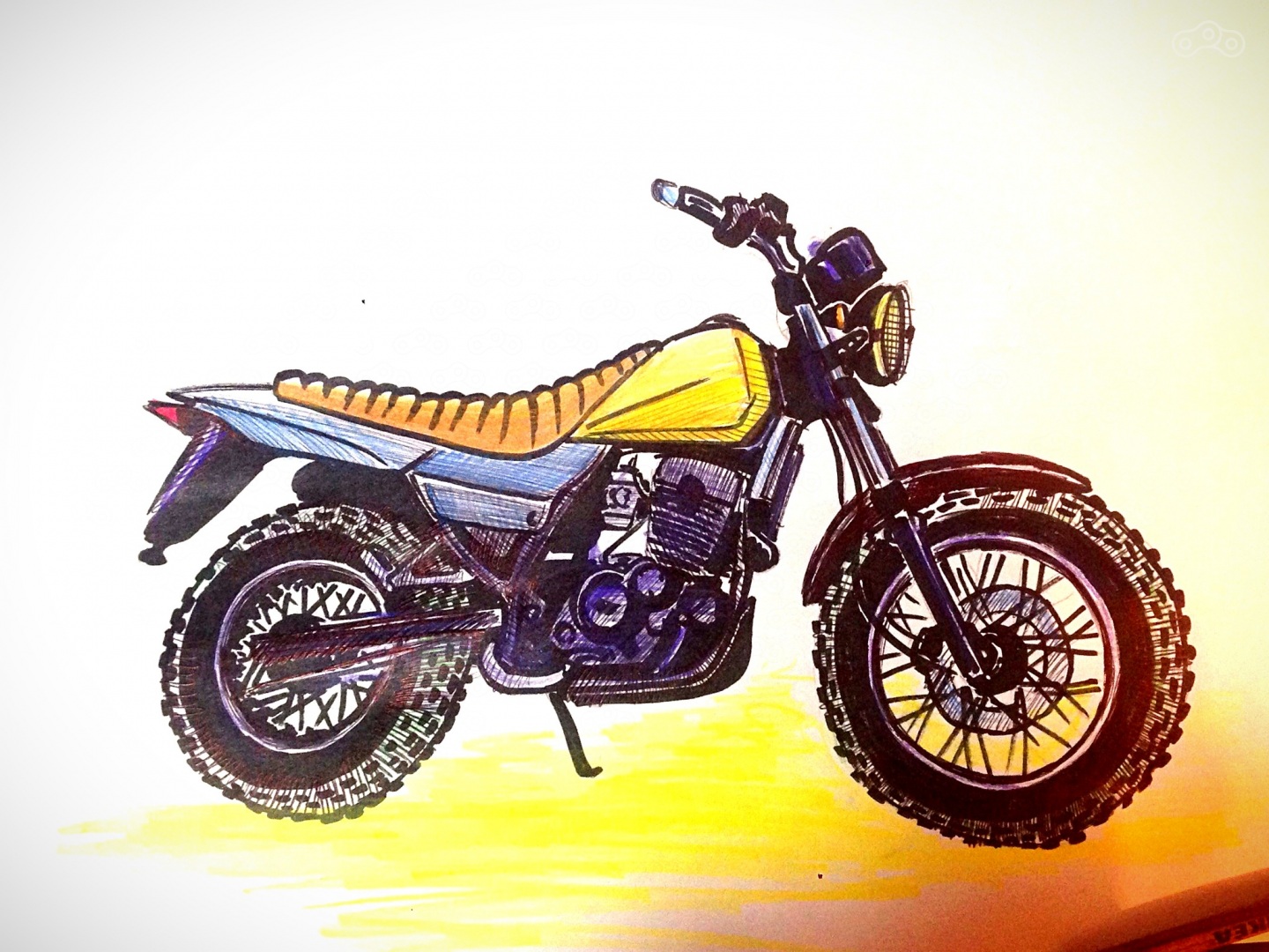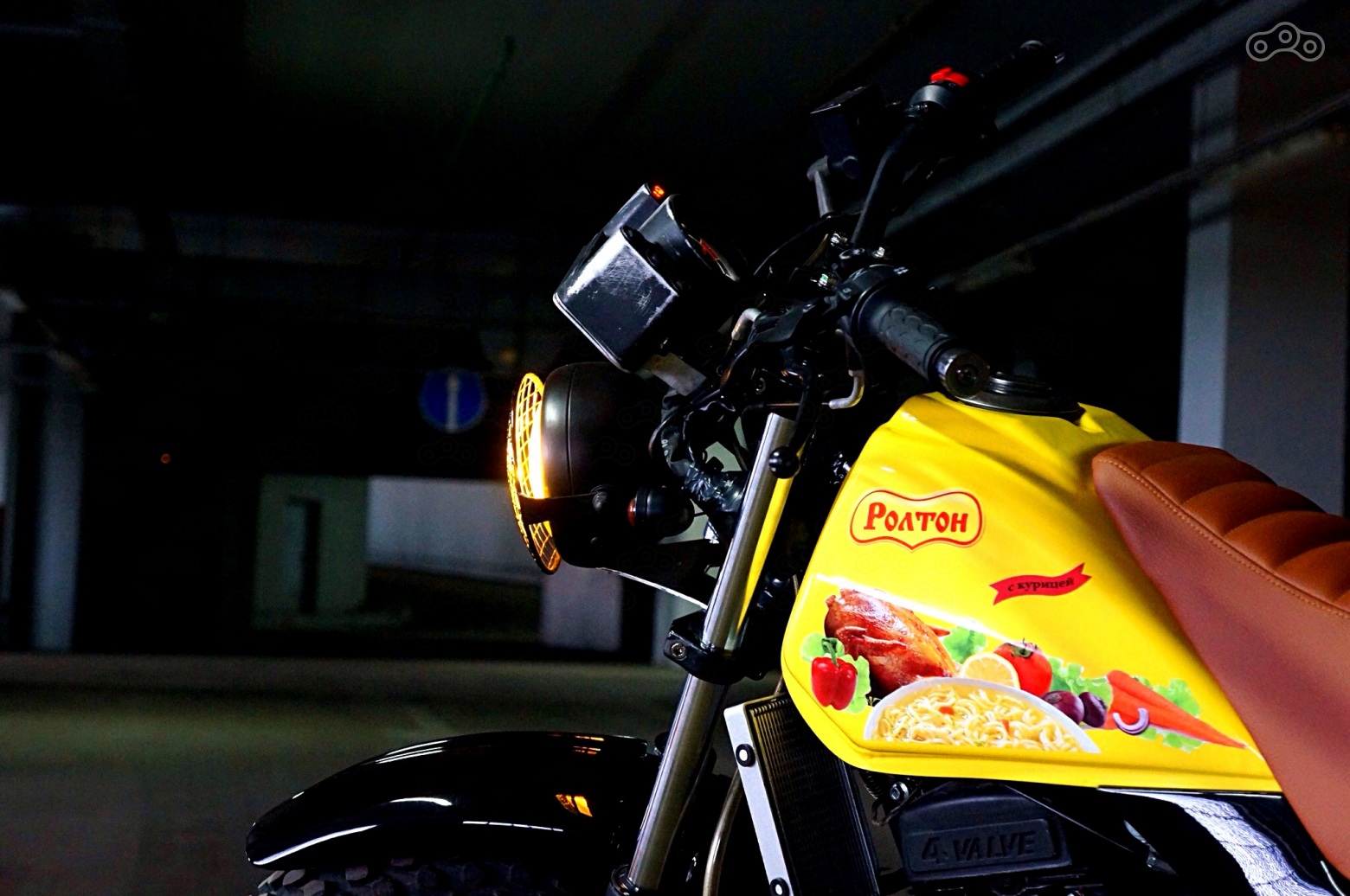 "Роллтон"! Да, именно то, что лучше всего передает дух всего происходящего в ту минуту. Азиатский до мозга костей мотоцикл, похожий на лапшу, залитую кипятком наших переживаний и желтый бак как идеальный фон для графики. Ее https://vk.com/galarose отрисовала по моим несвязным воплям и напечатала на белом виниле.