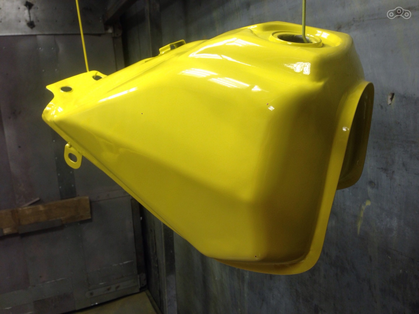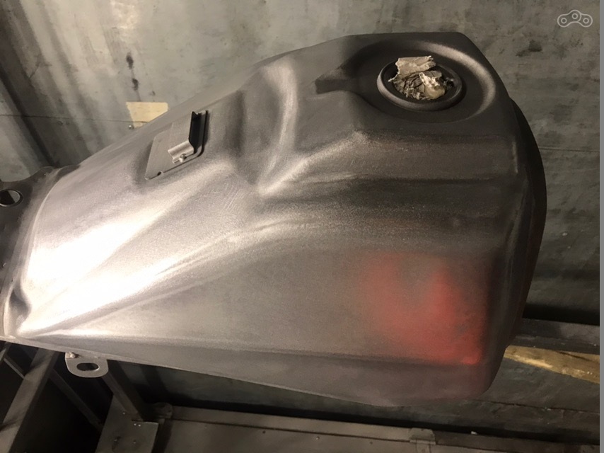 Хочется сказать, что работа закипела, но особенно кипеть было нечему. Состояние радовало и не требовало прикладывать руки, поэтому мотоцикл не спеша разобрался и по частям отправился в разные руки, шившие и красившие его отдельные части. К слову о покраске - за бак маляры назвали какие-то запредельные деньги, поэтому порошковая покраска оказалась отличной альтернативой.