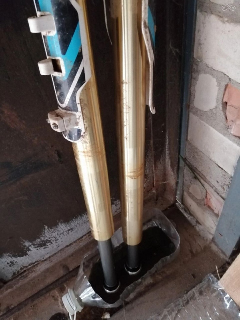 В перьях после разбора вытекло грамм по 400 густой темной жижи, которая была заменена на масло eni 7.5w по 450 мл на перо (подсказали на профильном форуме). Подвеска стала однозначно лучше, стали ощущаться изменения при регулировках, да и рукам стало приятнее при прохождении неровностей, не стало их отбивать. Вязкость подсказали на мотокроссе, там они в перья вообще льют 5w.